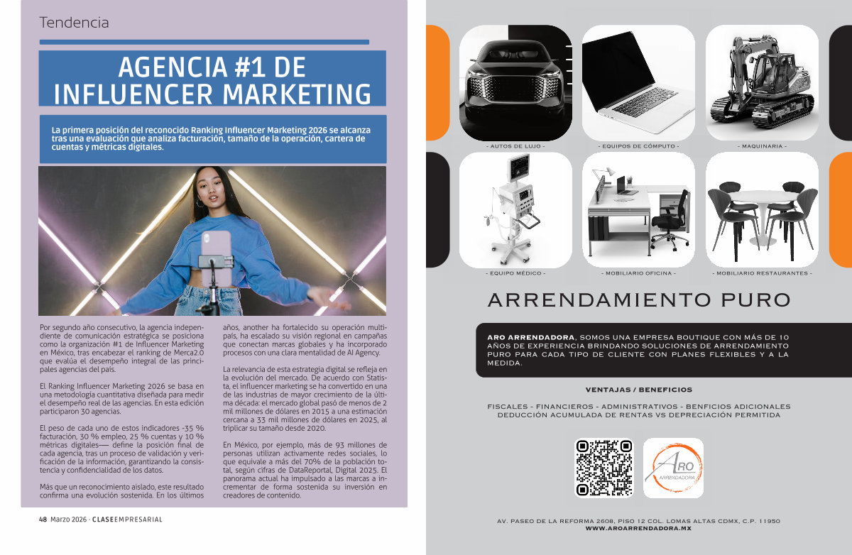 AV. PASEO DE LA REFORMA 2608, PISO 12 COL. LOMAS CLASEEMPRESARIAL ALTAS CDMX, C · Noviembre. P. 11950 2024 47 WWW. AROARRENDADORA. MX