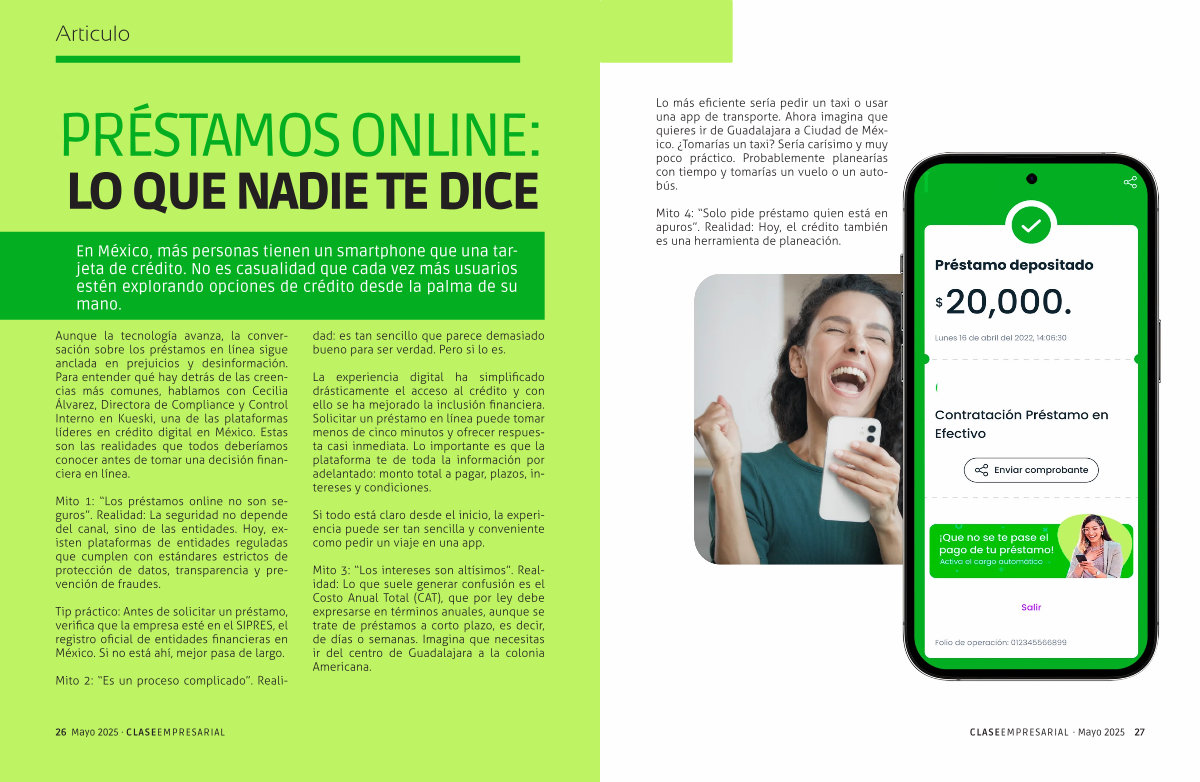 Aunque la tecnología avanza, la conversación sobre los préstamos en línea sigue anclada en prejuicios y desinformación. Para entender qué hay detrás de las creencias más comunes, hablamos con Cecilia Álvarez, Directora de Compliance y Control Interno en Kueski, una de las plataformas líderes en crédito digital en México. Estas son las realidades que todos deberíamos conocer antes de tomar una decisión financiera en línea.