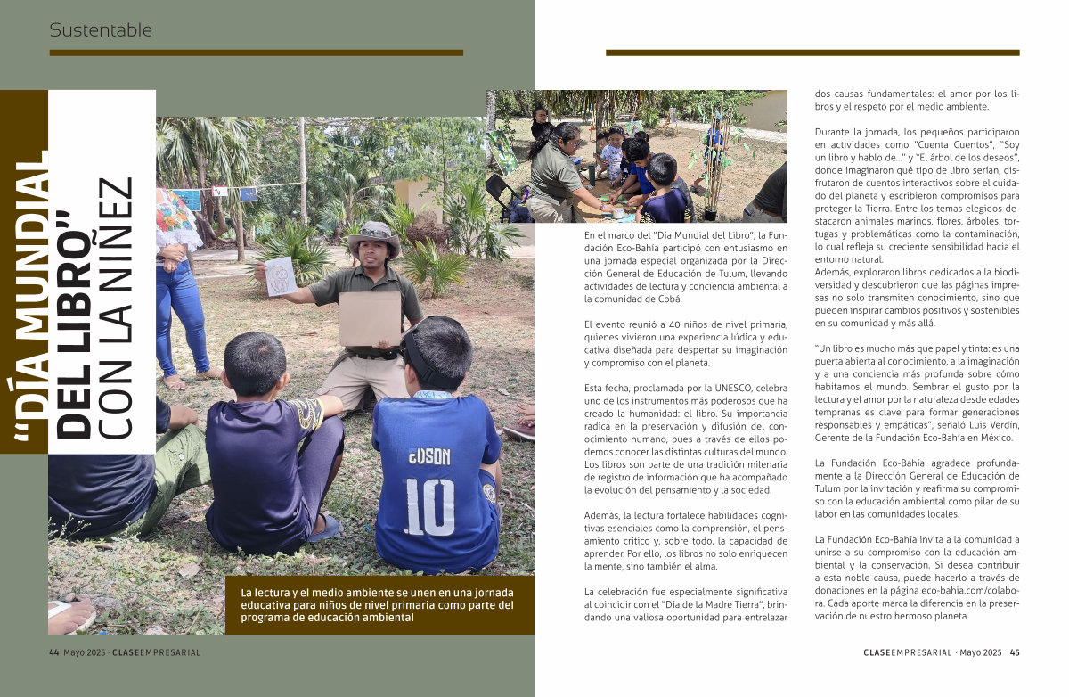 “ Un libro es mucho más que papel y tinta: es una puerta abierta al conocimiento, a la imaginación y a una conciencia más profunda sobre cómo habitamos el mundo. Sembrar el gusto por la lectura y el amor por la naturaleza desde edades tempranas es clave para formar generaciones responsables y empáticas”, señaló Luis Verdín, Gerente de la Fundación Eco-Bahía en México.