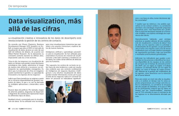 Operativamente hablando , ¿ qué ventajas prácticas se pueden obtener de una combinación de visualización y minería de datos ? Una de ellas son los reportes sobre la actividad y el desempeño de los agentes , ya que permiten ubicar tanto a los mejores como a los de menor rendimiento para así poder diseñar estrategias de capacitación puntuales , bajo una inversión y resultados prácticamente garantizados .