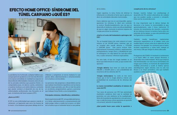 La pandemia nos ha llevado a adoptar hábitos que , aunque parecen ayudarnos a ser más más eficientes en la nueva normalidad , en realidad nos exponen al desarrollo de enfermedades o lesiones , tal es el caso de las jornadas extremas que pasamos frente a la computadora pues , sin darnos cuenta , sometemos a nuestras muñecas a un estrés intenso y constante que puede conducir al desarrollo de una de las enfermedades profesionales más frecuente en el país : el síndrome del túnel carpiano ( STC ).