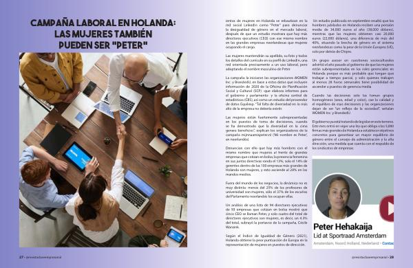 Las mujeres están fuertemente subrepresentadas en los puestos de toma de decisiones , cuando se ha demostrado que la diversidad en la cima genera beneficios ”, explican los organizadores de la campaña mijnnaamispeter . nl (‘ Mi nombre es Peter ’, en neerlandés ).