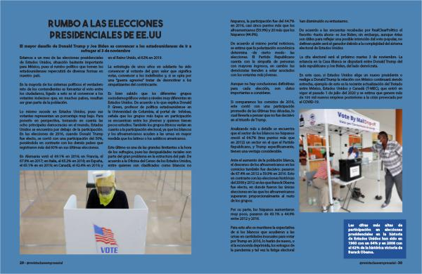 La cita electoral será el próximo martes 3 de noviembre . La estancia en la Casa Blanca se disputará entre Donald Trump del lado republicano y Joe Biden , del lado demócrata .