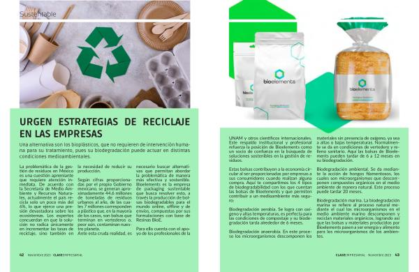UNAM y otros científicos internacionales . Este respaldo institucional y profesional refuerza la posición de Bioelements como un socio de confianza en la búsqueda de soluciones sostenibles en la gestión de residuos .