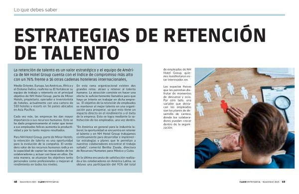 La retención de talento es un valor estratégico y el equipo de América de NH Hotel Group cuenta con el índice de compromiso más alto con un 76 % frente a 16 otras cadenas hoteleras internacionales ,