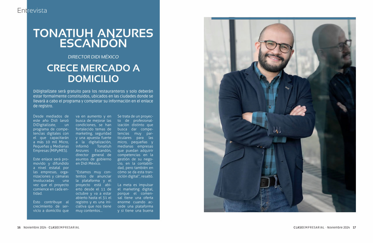 Esto contribuye al crecimiento de servicio a domicilio que va en aumento y en busca de mejorar las condiciones , se han fortalecido temas de marketing , seguridad y una apuesta fuerte a la digitalización , informó Tonatiuh Anzures Escandón , director general de asuntos de gobierno en Didi México .