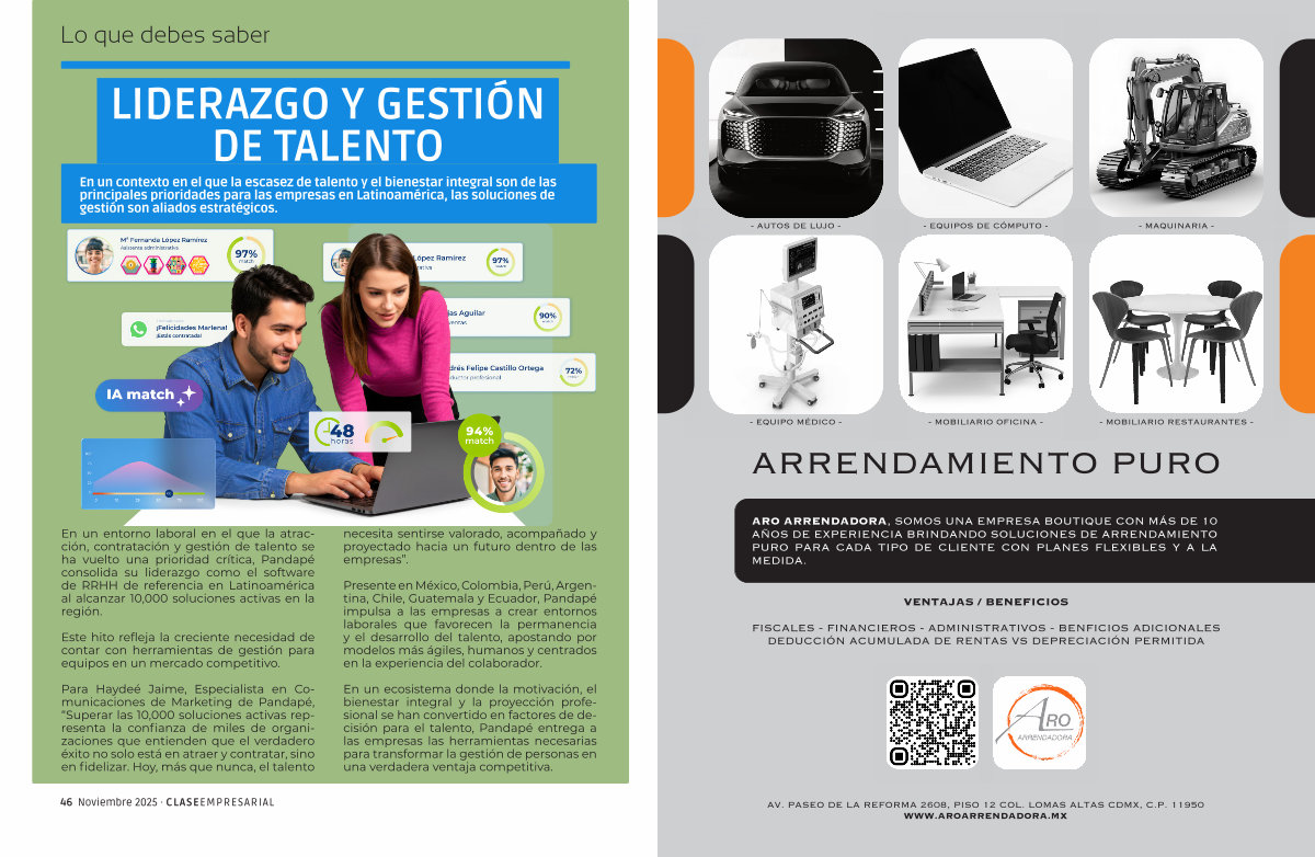 AV. PASEO DE LA REFORMA 2608, PISO 12 COL. LOMAS CLASEEMPRESARIAL ALTAS CDMX, C · Noviembre. P. 11950 2024 47 WWW. AROARRENDADORA. MX