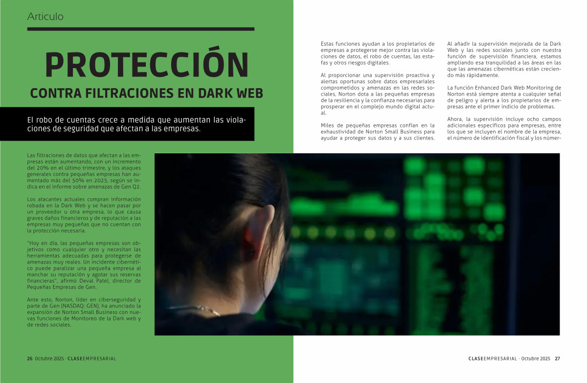 Ante esto, Norton, líder en ciberseguridad y parte de Gen( NASDAQ: GEN), ha anunciado la expansión de Norton Small Business con nuevas funciones de Monitoreo de la Dark web y de redes sociales.