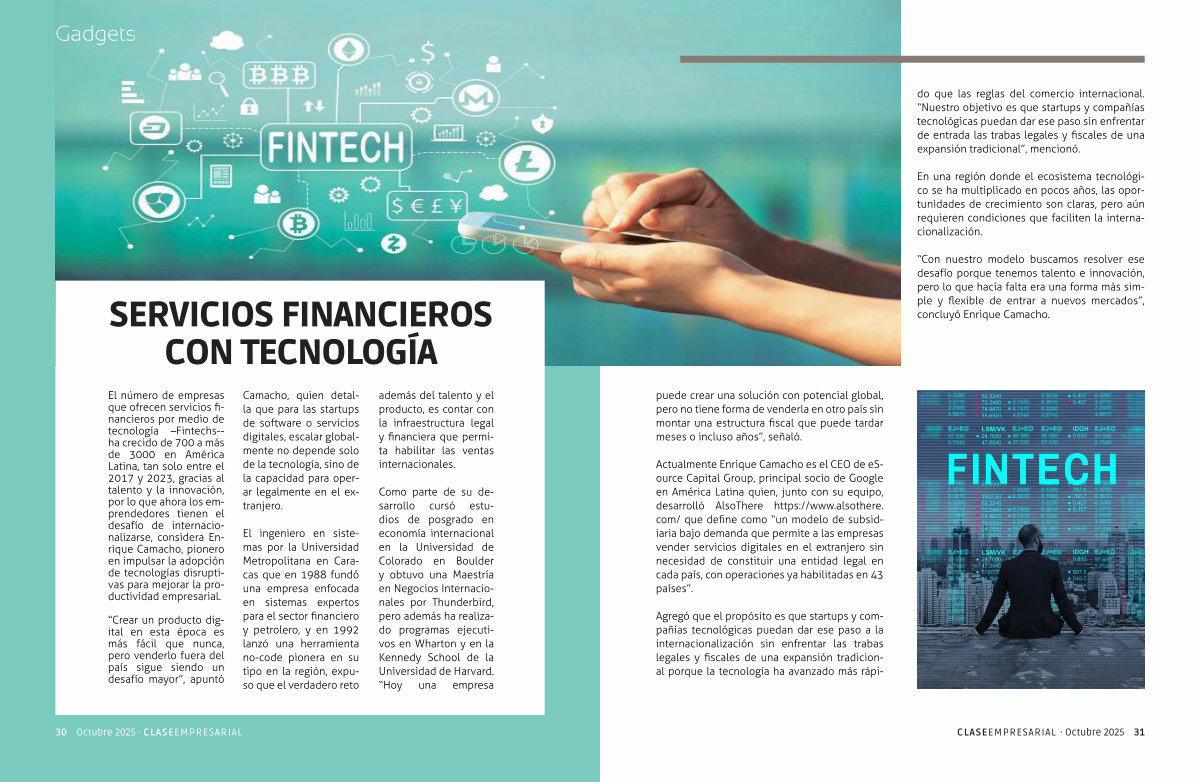 Actualmente Enrique Camacho es el CEO de eSource Capital Group, principal socio de Google en América Latina quien, junto con su equipo, desarrolló AlsoThere https:// www. alsothere. com / que define como“ un modelo de subsidiaria bajo demanda que permite a las empresas vender servicios digitales en el extranjero sin necesidad de constituir una entidad legal en cada país, con operaciones ya habilitadas en 43 países”.
