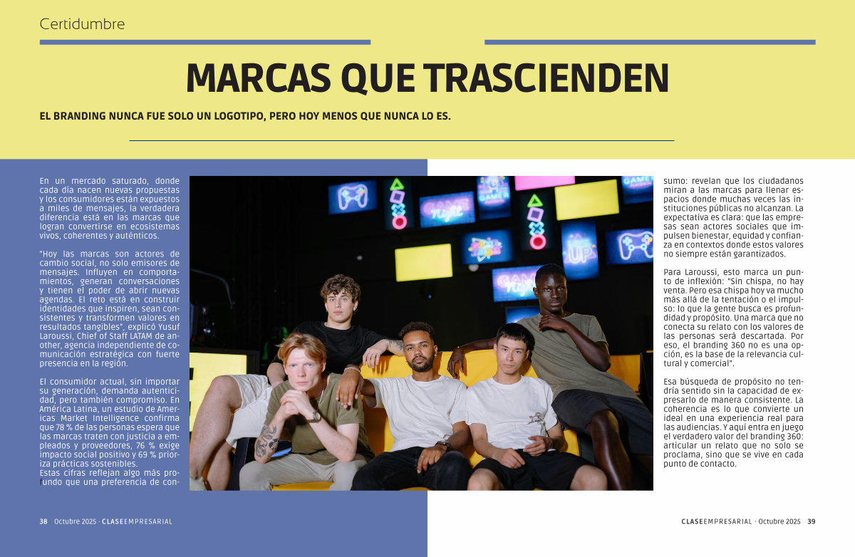 “ Hoy las marcas son actores de cambio social, no solo emisores de mensajes. Influyen en comportamientos, generan conversaciones y tienen el poder de abrir nuevas agendas. El reto está en construir identidades que inspiren, sean consistentes y transformen valores en resultados tangibles”, explicó Yusuf Laroussi, Chief of Staff LATAM de another, agencia independiente de comunicación estratégica con fuerte presencia en la región.