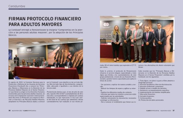 En agosto de 2022 , la Comisión Nacional para la Protección y Defensa de los Usuarios de Servicios Financieros ( Condusef ) dio a conocer los “ Principios Básicos a Observarse en la Atención de las Personas Adultas Mayores en el Sector Financiero ”, que tienen su origen en los Derechos Humanos reconocidos para las personas adultas mayores , en el marco de la legislación nacional e internacional . Ante ello firmó un Protocolo para mejorar la Atención y el Servicio a las Personas Adultas Mayores , adoptando los Principios Básicos dados a conocer por la Condusef , cuyo objetivo es dar un trato digno , libre de todo tipo de discriminación , comprensible , adecuado e igualitario a sus clientes de la tercera edad .