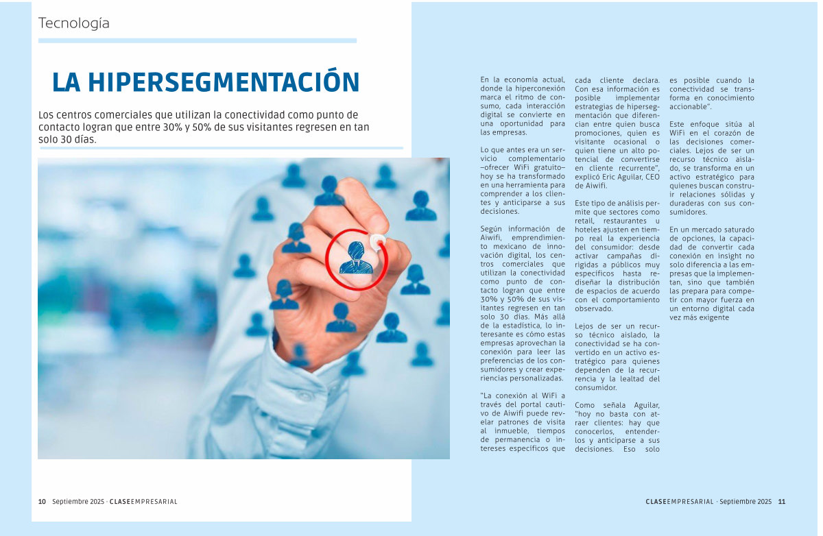 “ La conexión al WiFi a través del portal cautivo de Aiwifi puede revelar patrones de visita al inmueble, tiempos de permanencia o intereses específicos que cada cliente declara. Con esa información es posible implementar estrategias de hipersegmentación que diferencian entre quien busca promociones, quien es visitante ocasional o quien tiene un alto potencial de convertirse en cliente recurrente”, explicó Eric Aguilar, CEO de Aiwifi.