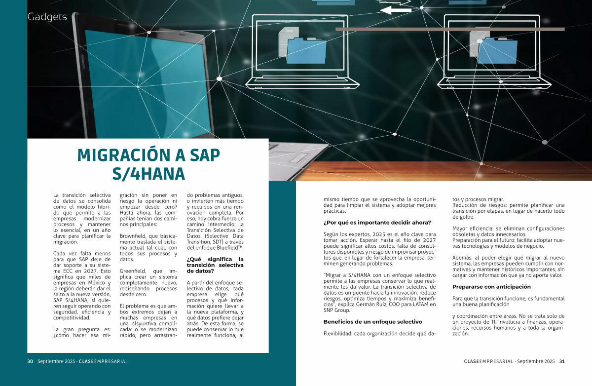 “ Migrar a S / 4HANA con un enfoque selectivo permite a las empresas conservar lo que realmente les da valor. La transición selectiva de datos es un puente hacia la innovación: reduce riesgos, optimiza tiempos y maximiza beneficios”, explica Germán Ruíz, COO para LATAM en SNP Group.