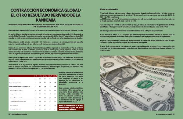 De acuerdo con el Banco Mundial se espera una contracción de 5.2% en 2020, con una caída del