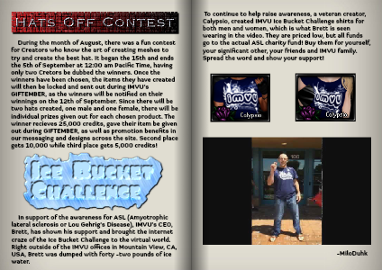 To continue to help raise awareness, a veteran creator, Calypsio, created IMVU Ice Bucket Challenge shirts for both men and women, which is what Brett is seen wearing in the video. They are priced low, but all funds go to the actual ASL charity fund! Buy them for yourself, your significant other, your friends and IMVU family. Spread the word and show your support!