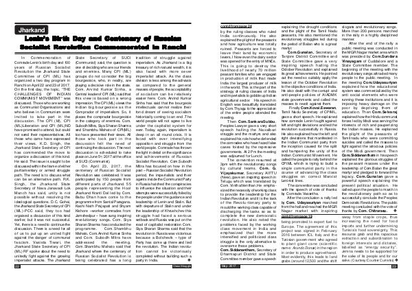 Jharkand Lenin’ s Birth Day and Centenary of Russian