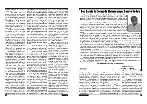 In the b irth place of democratic ideals and liberal ideals of freedom, equality and fraternity, the Europe-the rightist parties are gaining ground. The Brexit is the consequence of the conservative and rightist ideas implanted in to the toiling people who have been pauperised due to the austerity measures imple-mented in the E. U. countries.