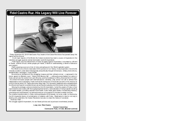 Today, November 25, 2016 Fidel Castro Ruz, leader of the Cuban Revolution has passed away. His