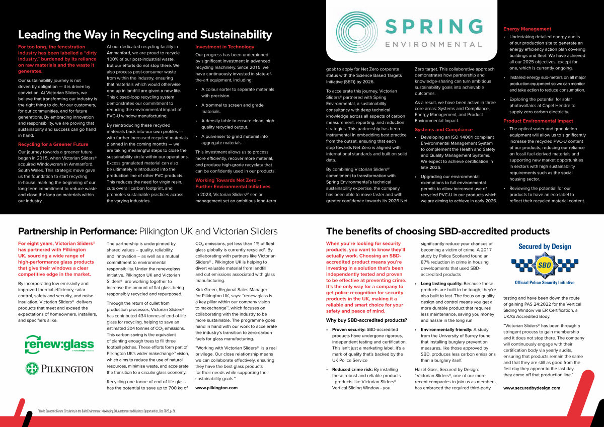 The partnership is underpinned by shared values – quality, reliability, and innovation – as well as a mutual commitment to environmental responsibility. Under the renew: glass initiative, Pilkington UK and Victorian Sliders ® are working together to increase the amount of flat glass being responsibly recycled and repurposed.