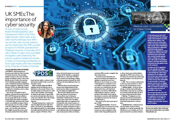To help businesses start their cyber security journey , PDSC have developed a simple online assessment tool which will help test the resilience of the business to the most common types of cyber crime . Based on the National Cyber Security Centre ’ s Small Business Guide , and developed in collaboration with BSI ( the British Standards Institution ), our Digitally Aware scheme recognises those businesses who have made the first step towards better cyber security . Successful applicants receive a certificate and a tailored report with specific recommendations of action in accordance with the latest Government and police guidance based on their assessment .