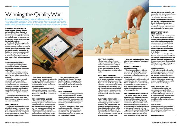 DON ’ T CUT CORNERS Cutting corners is almost always the wrong thing in business . This applies when it comes to materials , tools and quality of workmanship . It ’ s not a coincidence that the most successful businesses are nearly always well-equipped and use market leading supplies .