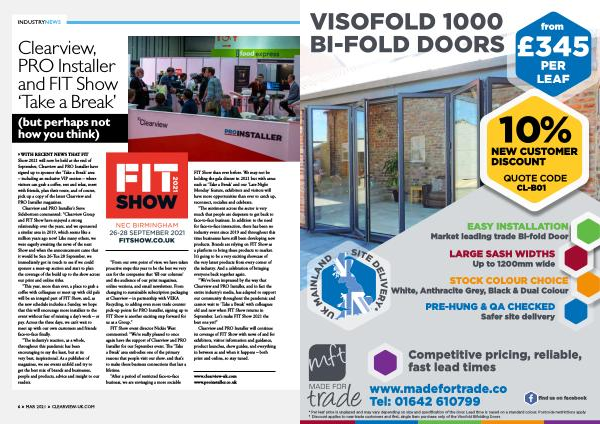“ We ’ ve been impressed by the way that Clearview and PRO Installer , and in fact the entire industry ’ s media , has adapted to support our community throughout the pandemic and cannot wait to ‘ Take a Break ’ with colleagues old and new when FIT Show returns in September . Let ’ s make FIT Show 2021 the best one yet !”