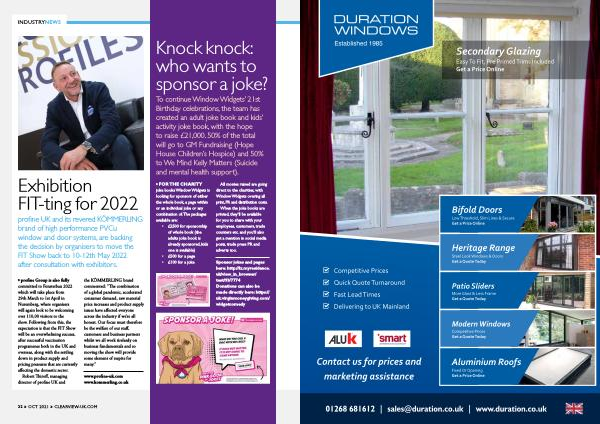 » profine Group is also fully committed to Fensterbau 2022 which will take place from 29th March to 1st April in Nuremberg , where organisers will again look to be welcoming over 110,00 visitors to the show . Following from this , the expectation is that the FIT Show will be an overwhelming success , after successful vaccination programmes both in the UK and overseas , along with the settling down in product supply and pricing pressures that are currently affecting the domestic sector .