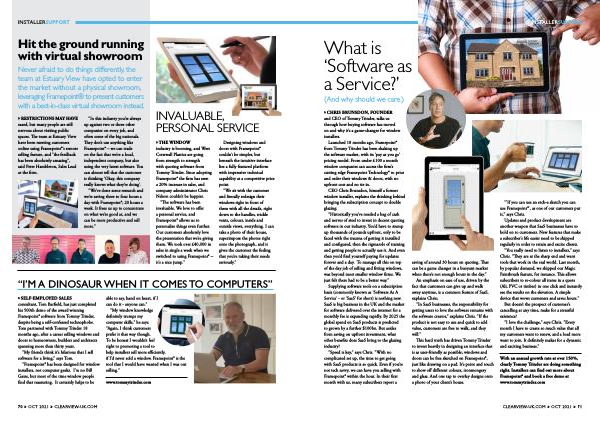 » THE WINDOW industry is booming , and West Cornwall Plastics are going from strength to strength with quoting software from Tommy Trinder . Since adopting Framepoint ® the firm has seen a 20 % increase in sales , and company administrator Chris Nelson couldn ’ t be happier .