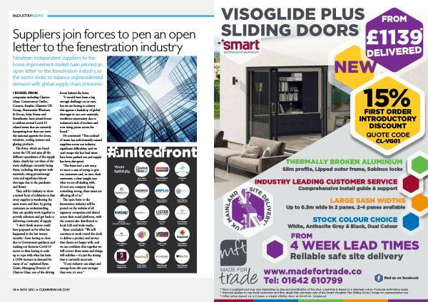 » BOSSES , FROM companies including Clayton Glass , Conservatory Outlet , Consort , Emplas , Glazerite UK Group , Nationwide Windows & Doors , Solar Frame and Sternfenster , have joined forces to address several Covid-19 related issues that are currently hampering how they can meet the national appetite for doors , windows , roofing systems and glazing products .