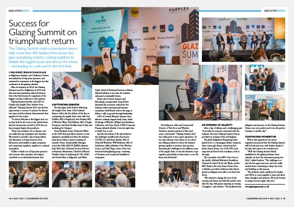 With a clear appetite for its return , organisers announced that the Glazing Summit will be back next year , with further details of the date and venue to be revealed soon . “ With the Glazing Summit firmly established in the glazing industry event calendar , we have the momentum going into 2022 ,” added Andrew . “ The challenge is to raise the bar again next year and we ’ re really excited about continuing to shape the event and building on this success .