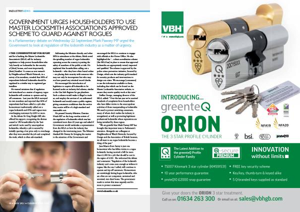 He pressed Security Minister , Damian Hinds MP on the long overdue review of the regulation of locksmiths which was last considered more than 20 years ago and asked if Government would undertake a representation from the MLA on how the industry has changed in the intervening years . The Minister thanked Mr Pawsey for bringing the matter to the attention of the Government and encouraged the MLA to continue to engage with officials at the Home Office . He also highlighted the ‘… robust accreditation scheme [ the MLA has ] in place to ensure that approved locksmiths are appropriately vetted , inspected and qualified . The scheme is approved by the police crime prevention initiative , Secured by Design , which sets the industry gold standard for security products and interventions to design out crime . We encourage [ consumers ] to use the information available to them , including that which can be found on the Master Locksmiths Association website , to ensure they receive quality work at fair rates .’