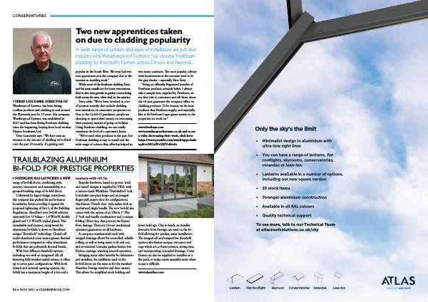 Terry Luscombe says : “ We have seen an increase in the amount of cladding we ’ ve fitted over the past 18 months . It ’ s getting very popular in the South West . We even had two new apprentices join the company due to the increase in cladding work .”