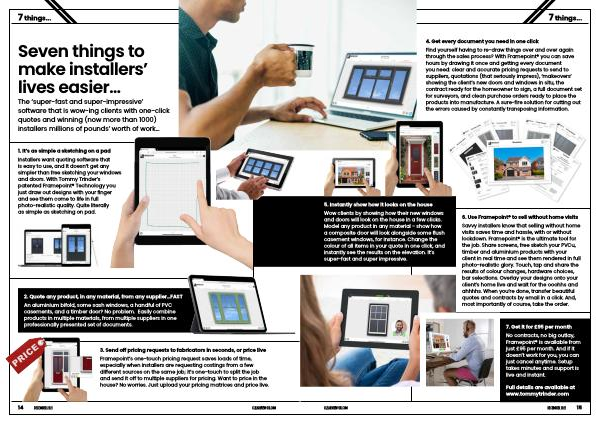 Installers want quoting software that is easy to use , and It doesn ’ t get any simpler than free sketching your windows and doors . With Tommy Trinder ’ s patented Framepoint ® Technology you just draw out designs with your finger and see them come to life in full photo-realistic quality . Quite literally as simple as sketching on pad .