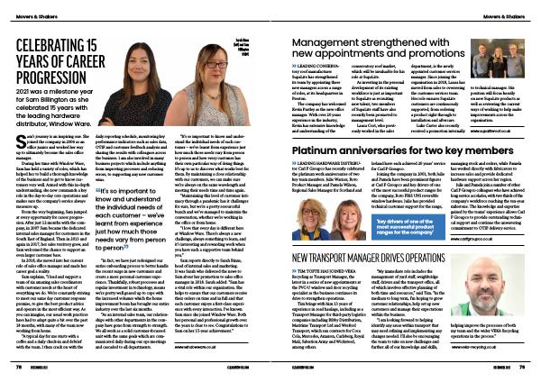 » LEADING HARDWARE DISTRIBUtor Carl F Groupco has recently celebrated the platinum work anniversaries of two key team members . Julie Warner , Roto Product Manager and Pamela Wilson , Regional Sales Manager for Scotland and