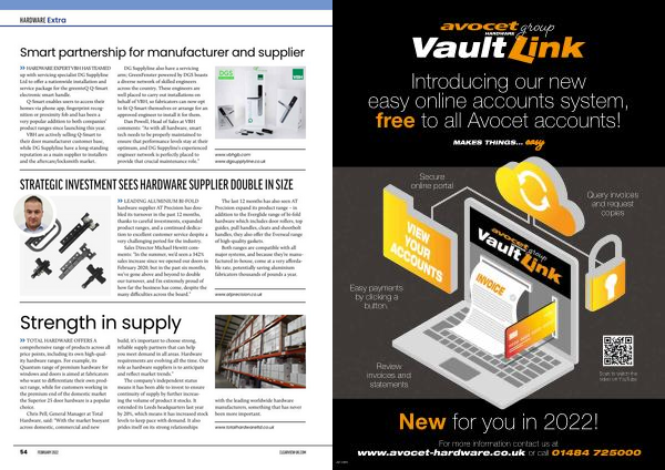 DG Supplyline also have a servicing arm ; GreenFenster powered by DGS boasts a diverse network of skilled engineers across the country . These engineers are well placed to carry out installations on behalf of VBH , so fabricators can now opt to fit Q-Smart themselves or arrange for an approved engineer to install it for them . Dan Powell , Head of Sales at VBH comments : “ As with all hardware , smart tech needs to be properly maintained to ensure that performance levels stay at their optimum , and DG Suppyline ’ s experienced engineer network is perfectly placed to provide that crucial maintenance role .” www . vbhgb . com www . dgsupplyline . co . uk