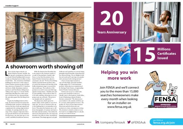 The showroom , which opened in January 2022 , exudes quality at every level . Luke said : “ As soon as customers drive up to the building there is an immediate wow factor . This opens the business up to a different demographic of customer and starts a first-class customer journey . Once inside , the showroom demonstrates the vast range and diversity of our offer in a clean , contemporary environment . This design approach was quite deliberate and capitalises on current design principles towards smoother , cleaner lines and less cluttered living . We are delighted with the end result and it ’ s proving very popular with customers both existing and new .” L Pearce Home Improvements is one of North Wales ’ specialist installers of high-quality PVC-U and aluminium products . All products are manufactured by Heritage Trade Frames , a longstanding Epwin Window Systems fabricator .
