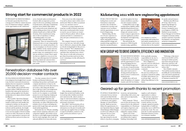 » SPECIALIST ALUMINIUM FABRICAtor Fentrade reports that there ’ s been a strong start to 2022 for commercial products . For businesses looking to capitalise on the opportunities in the commercial