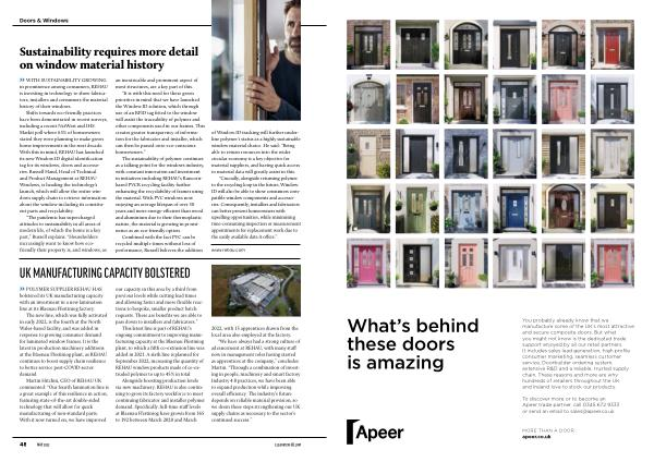“ We have always had a strong culture of advancement at REHAU , with many staff now in management roles having started as apprentices at the company ,” concludes Martin . “ Through a combination of investing in people , machinery and smart factory Industry 4.0 practices , we have been able to expand production while improving overall efficiency . The industry ’ s future depends on reliable material provision , so we deem these steps strengthening our UK supply chains as necessary to the sector ’ s continued success .”