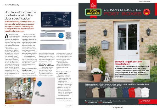 ARRONE , a HOPPE brand , has five fire door hardware kits that are available to buy off the shelf . Kits can be purchased for use on corridor doors ( both locking and non-locking ), bathroom doors , office doors and deadlocking doors . Installers should check the fire doors test evidence to ensure it allows the use of the product types to be fitted to the door they are using . Then they simply choose the corresponding ARRONE architectural ironmongery kit to suit the application of the door . The architectural ironmongery products within the kits are tested specifically to both European and British standards , and are third-party certificated by Certifire , so installers can be confident that the fire door will perform as stated on the box .