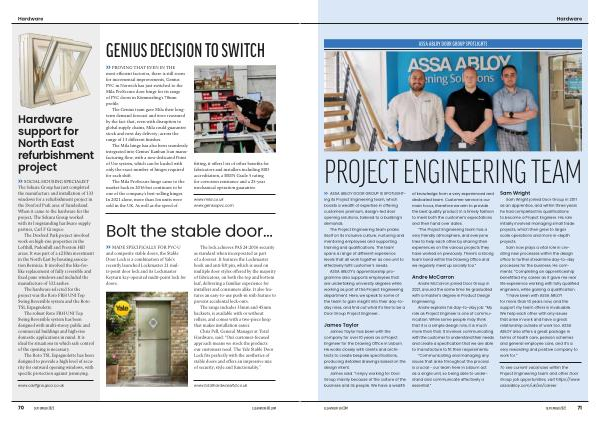 » PROVING THAT EVEN IN THE most efficient factories , there is still room for incremental improvements , Genius PVC in Norwich has just switched to the Mila ProSecure door hinge for its range of PVC doors in Kömmerling ’ s 70mm profile .