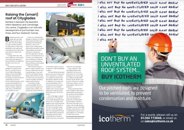 Jonny Cox , National Sales Manager at Smartroof , worked closely with both This Land and Keylite Roof Windows ( Keylite ) to ensure each aspect of the roofing system reflected the developer ’ s vision : “ Sustainability and modern methods of construction were two huge drivers for this project . It was important for us to ensure our roofing system and everything in it reflected these factors by prioritising thermal efficiency and modular construction methods .