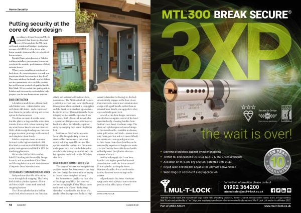 Extreme protection against cylinder snapping Tested to , and exceeds EN1303 , SS312 & TS007 requirements Available on MTL300 key section , patented until 2033 Keyed-alike and master keyable for ultimate convenience Wide range of sizes to fit every application