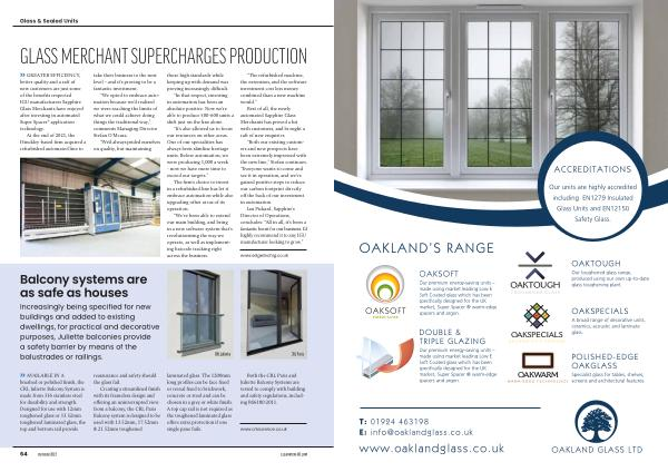 IGU manufacturers Sapphire Glass Merchants have enjoyed we were reaching the limits of after investing in automated what we could achieve doing Super Spacer ® application things the traditional way ,” technology . comments Managing Director