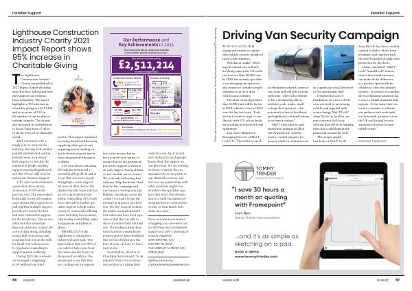 The Lighthouse Construction Industry Charity has published its 2021 Impact Report detailing who they have helped and how they support our construction community . The report highlights a 95 % increase in charitable giving to £ 2,511,214 and an increase of 23 % in the number of our workforce seeking support . The charity also increased its contribution to Social Value from £ 7.42 to £ 7.82 for every £ 1 of charitable spend .
