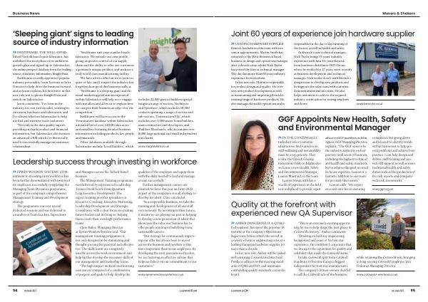 » LEADING HARDWARE SUPPLIER Kenrick has bolstered its team with two senior appointments . Martin Smith has returned to the West Bromwich based business as design and operations manager after a decade away , whilst Nick Taylor has joined the firm as technical manager . The duo has more than 60 years industry experience between them .