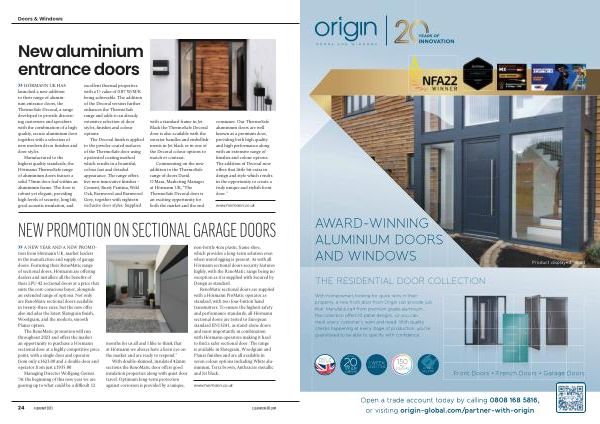» A NEW YEAR AND A NEW PROMOtion from Hörmann UK , market leaders in the manufacture and supply of garage doors . Featuring their RenoMatic range of sectional doors , Hörmann are offering dealers and installers all the benefits of their LPU 42 sectional doors at a price that suits the cost-conscious buyer , alongside an extended range of options . Not only are RenoMatic sectional doors available in twenty-three sizes , but the new offer also includes the latest Slategrain finish , Woodgrain , and the modern , smooth Planar option .