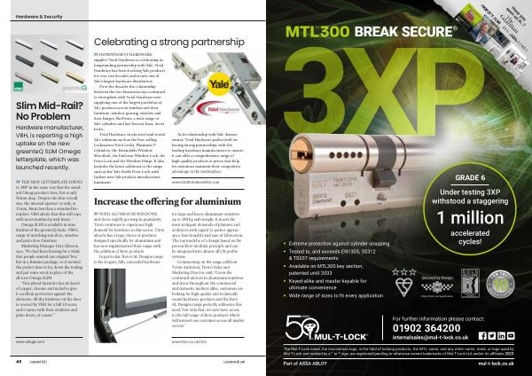 Extreme protection against cylinder snapping Tested to , and exceeds EN1303 , SS312 & TS007 requirements Available on MTL300 key section , patented until 2033 Keyed-alike and master keyable for ultimate convenience Wide range of sizes to fit every application