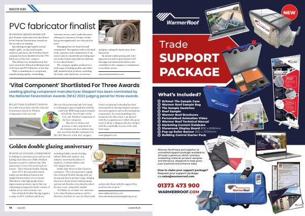 Warmer Roof have put together an unrivalled support package available to all trade customers which contains marketing material , product samples and literature , designed to help grow your business and enhance sales .