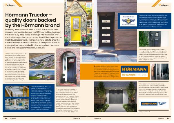 Following the successful launch of the Hörmann Truedor range of composite doors at the FIT Show in May , Hörmann has been busy integrating the range into their sales and distribution organisation run out of their UK headquarters in Coalville , Leicestershire . The team is now able to offer the market a comprehensive selection of composite doors at a competitive price , backed by the recognised Hörmann brand and with guaranteed service levels .