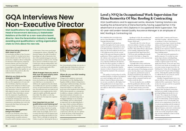 GQA Qualifications has appointed Chris Beedel , Head of Government Advocacy & Stakeholder Relations at the GGF as a non-executive board director . Here the fenestration industry ’ s leading awarding and qualifications-writing organisation chats to Chris about his new role .